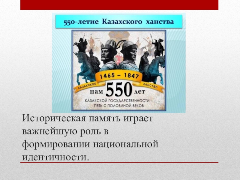 Слайд 1Роль исторической памяти в формировании казахстанской идентичности