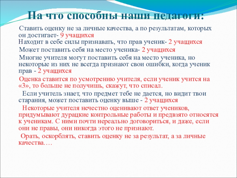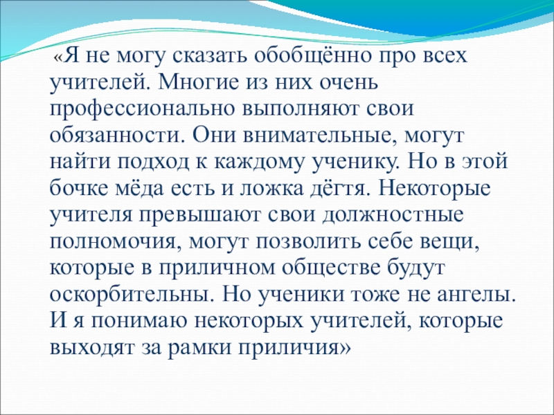 Слайд 16 «Я не могу сказать обобщённо про всех учителей. Многие