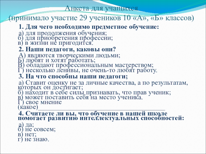 Слайд 12Анкета для учащихся