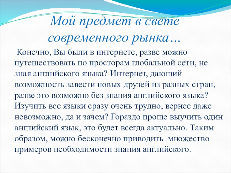 Слайд 11Мой предмет в свете современного рынка…