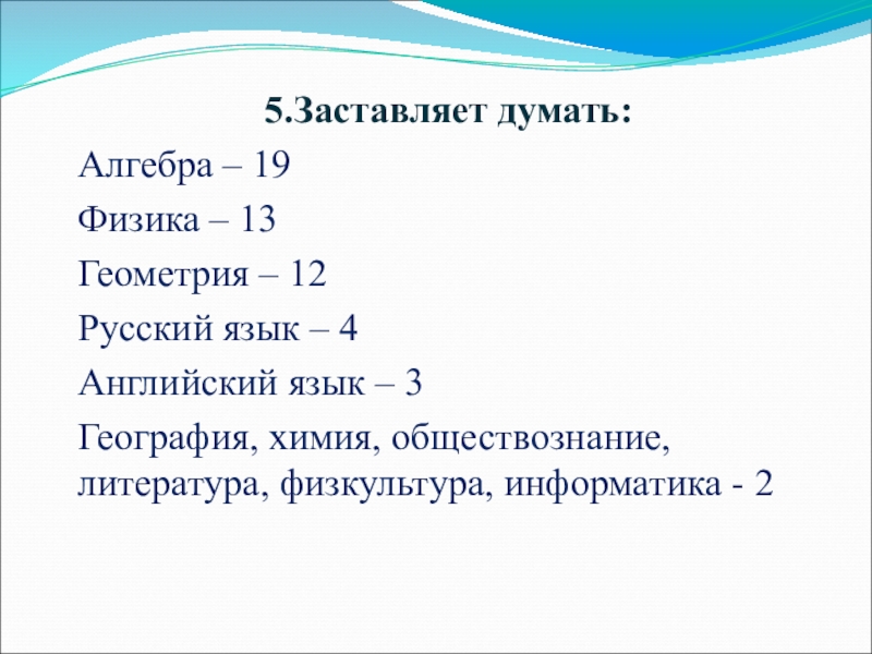 Слайд 225.Заставляет думать: