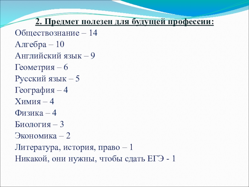Слайд 192. Предмет полезен для будущей профессии: