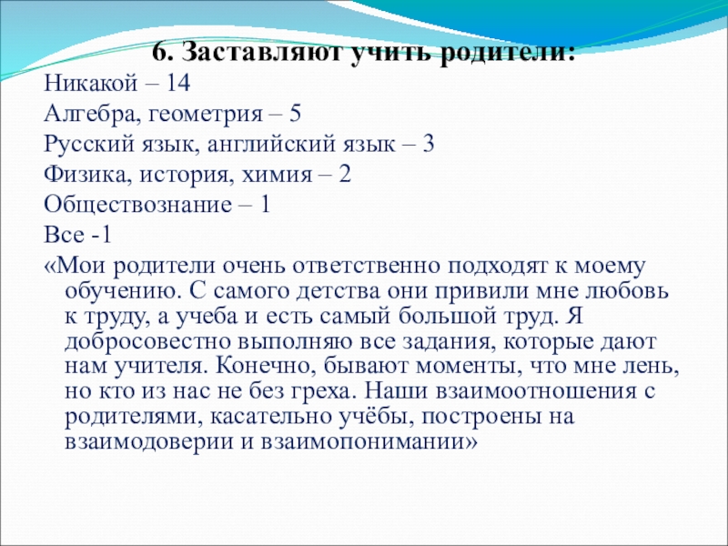 Слайд 236. Заставляют учить родители: