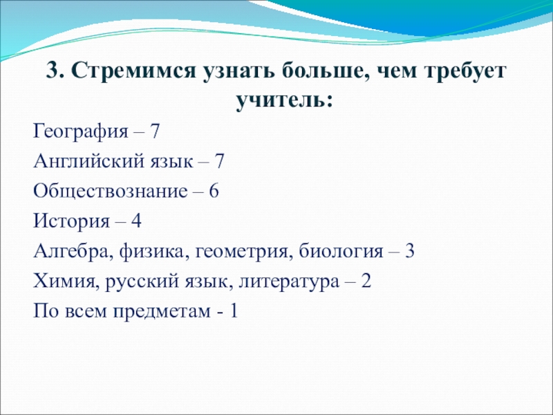 Слайд 203. Стремимся узнать больше, чем требует учитель: