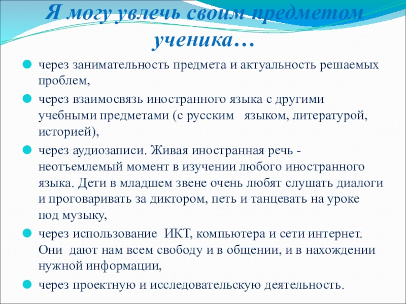 Слайд 9Я могу увлечь своим предметом ученика…