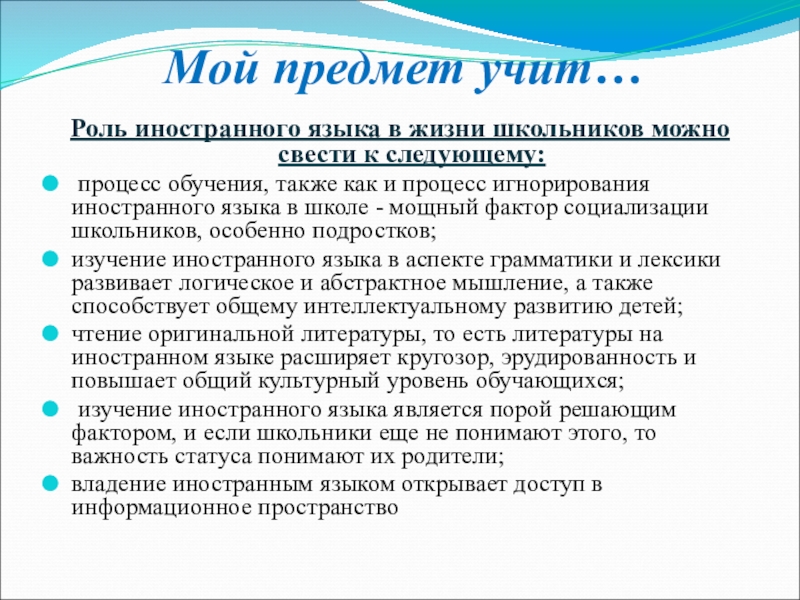 Роль иностранного языка в жизни школьников можно свести