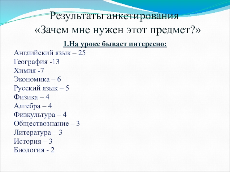 Слайд 18Результаты анкетирования