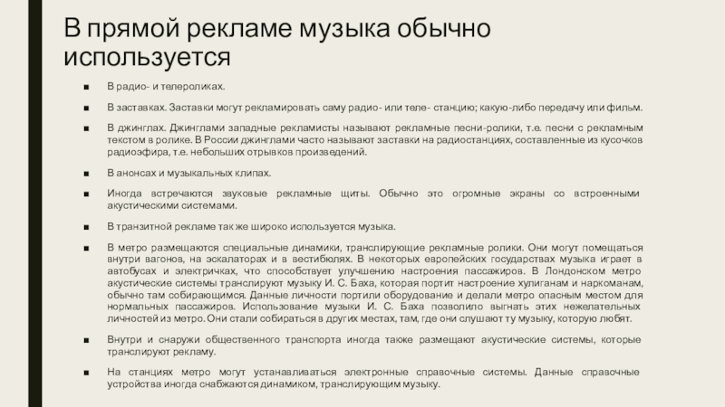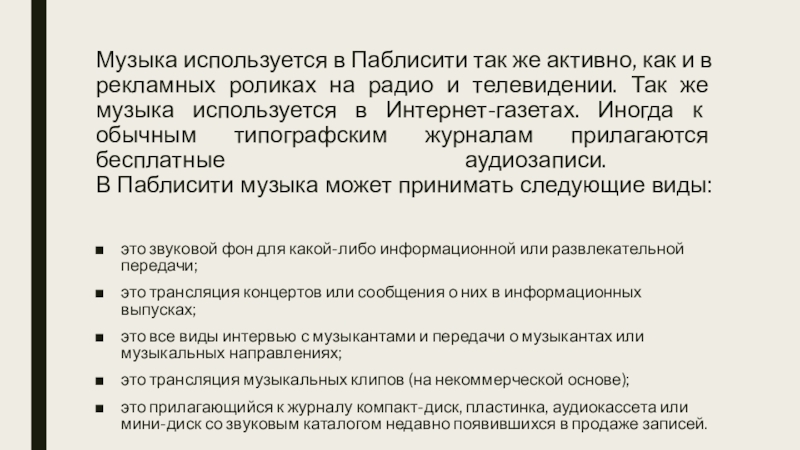 Слайд 8Музыка используется в Паблисити так же активно, как и в рекламных