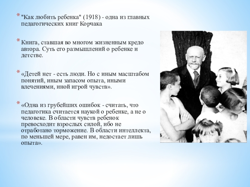 Слайд 4"Как любить ребенка" (1918) - одна из главных педагогических книг Корчака