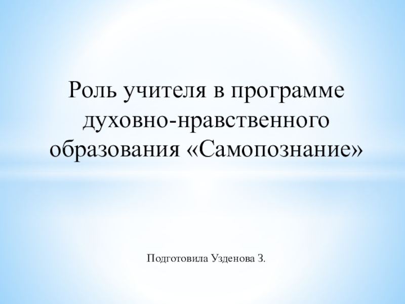 Слайд 1Роль учителя в программе духовно-нравственного образования «Самопознание» Подготовила Узденова З.