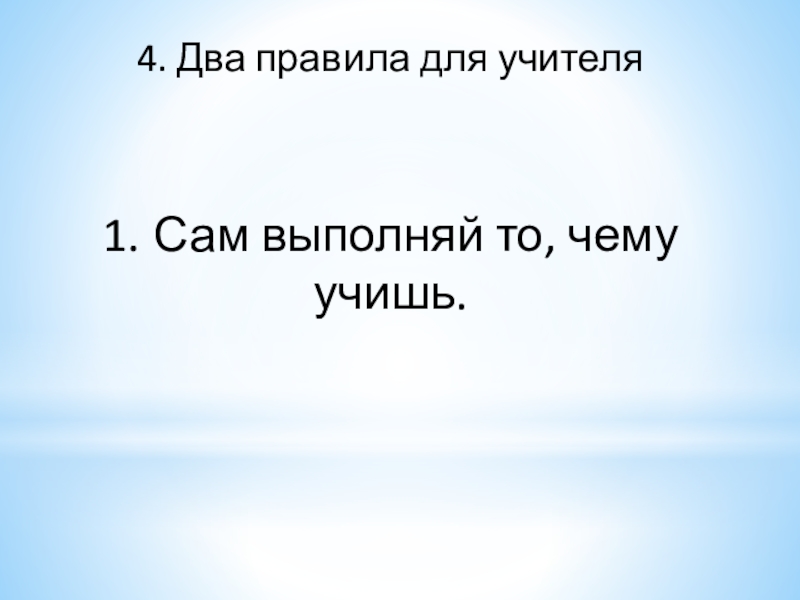 4. Два правила для учителя   1.	 Сам выполняй то, чему учишь.