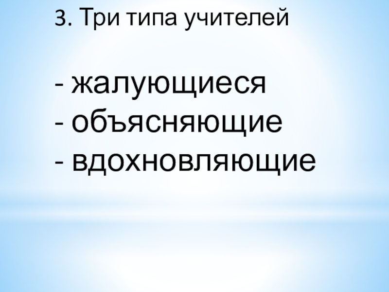 3. Три типа учителей  - жалующиеся - объясняющие - вдохновляющие