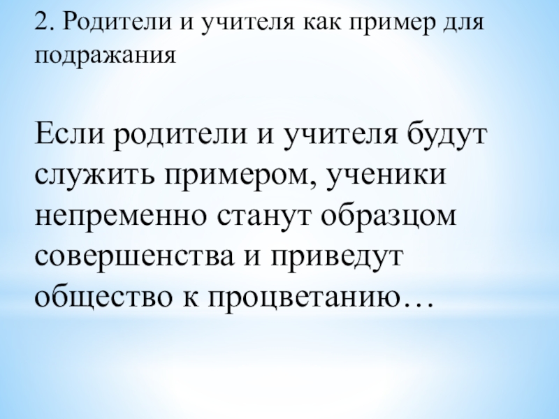 2. Родители и учителя как пример для подражания  Если родители и учителя будут служить примером, ученики