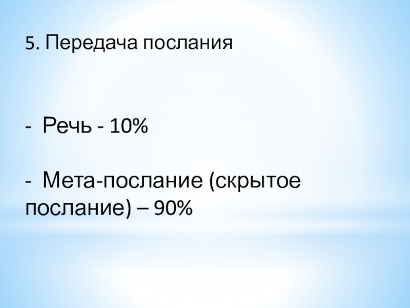 5. Передача послания   - Речь - 10%  - Мета-послание (скрытое послание) – 90%