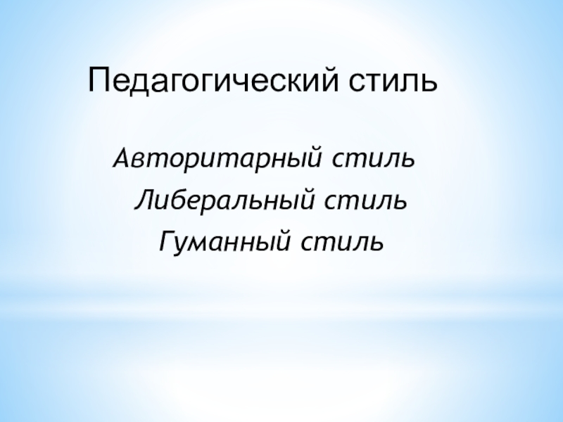 Педагогический стиль  Авторитарный стиль  Либеральный стиль  Гуманный стиль