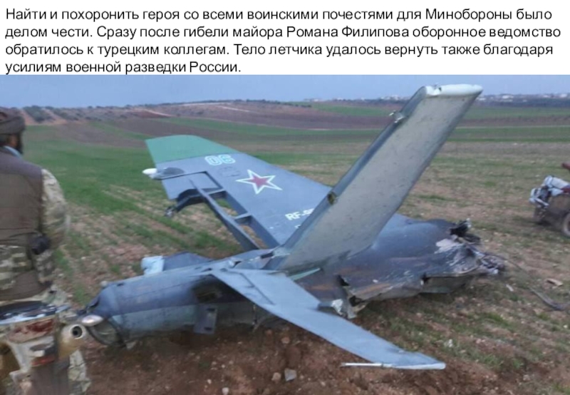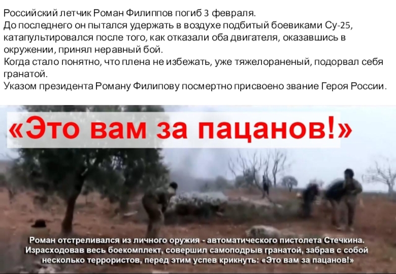 Слайд 5Российский летчик Роман Филиппов погиб 3 февраля. До последнего он пытался удержать