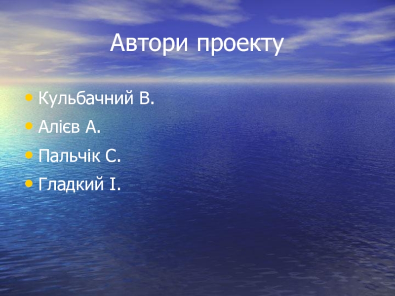 Автори проектуКульбачний В.Алiєв А.Пальчік С.Гладкий І.