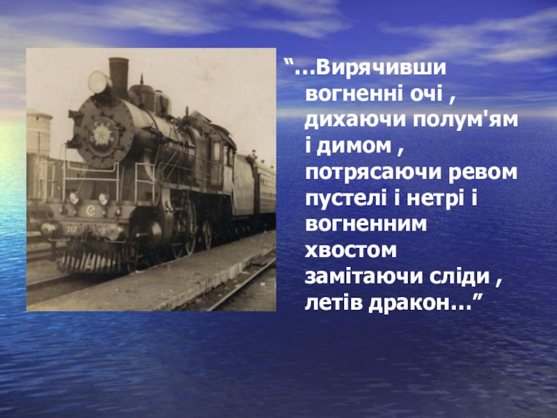 Слайд 8“…Вирячивши вогненні очі , дихаючи полум'ям і димом , потрясаючи ревом