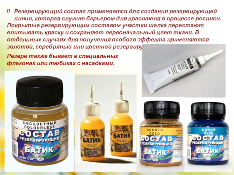 Резерв также бывает в специальных флаконах или тюбиках с насадками.