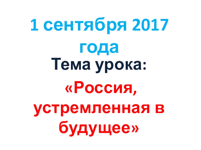 1 сентября 2017 года Тема урока: «Россия, устремленная в будущее»