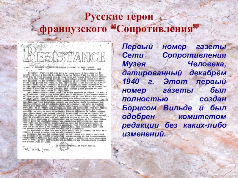 “Вильде, выдающийся пионер науки, с 1940 года целиком посвятил себя делу подпольного сопротивления, … явил своим поведением во время суда и под пулями палачей высший пример храбрости и самоотречения». Ш.де Голль