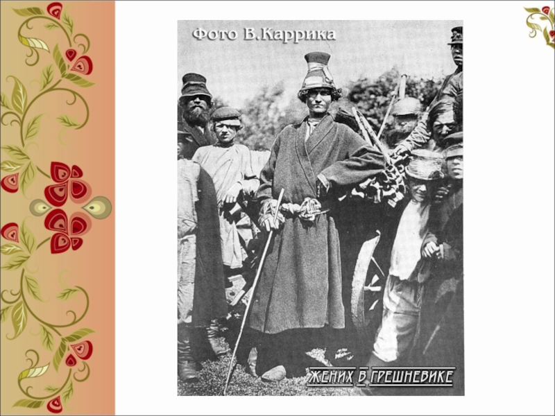 Слайд 5Из мужских головных уборах наиболее распространены были высокие барашковые шапки, катанные
