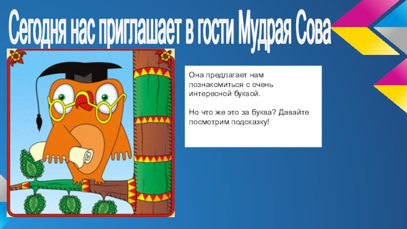 Она предлагает нам познакомиться с очень интересной буквой. Но что же это за буква? Давайте посмотрим подсказку!