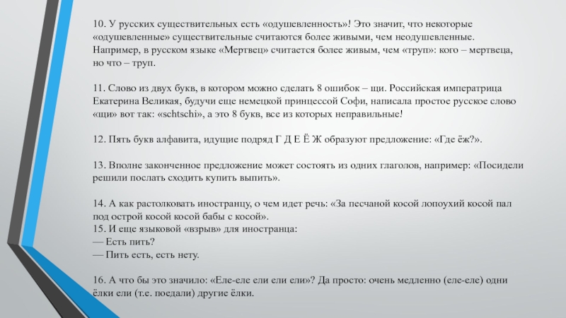Слайд 610. У русских существительных есть «одушевленность»! Это значит, что некоторые «одушевленные»