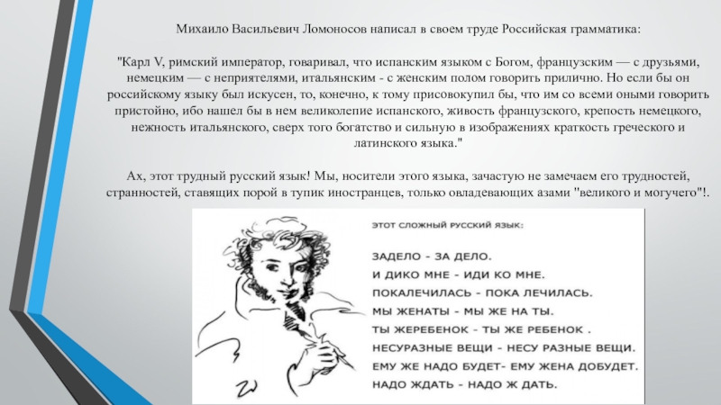 Слайд 2Михаило Васильевич Ломоносов написал в своем труде Российская грамматика: