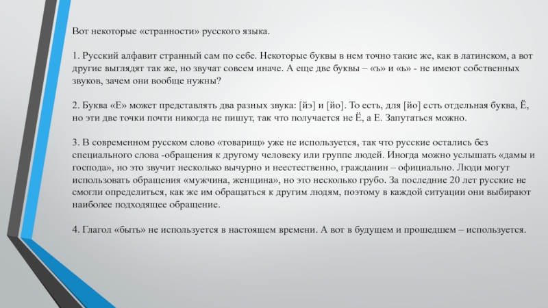 Некоторые буквы в нем точно такие же, как в латинском, а вот другие выглядят так же, но звучат совсем иначе. А еще две буквы – «ъ» и «ь» - не имеют собственных звуков, зачем они вообще нужны?