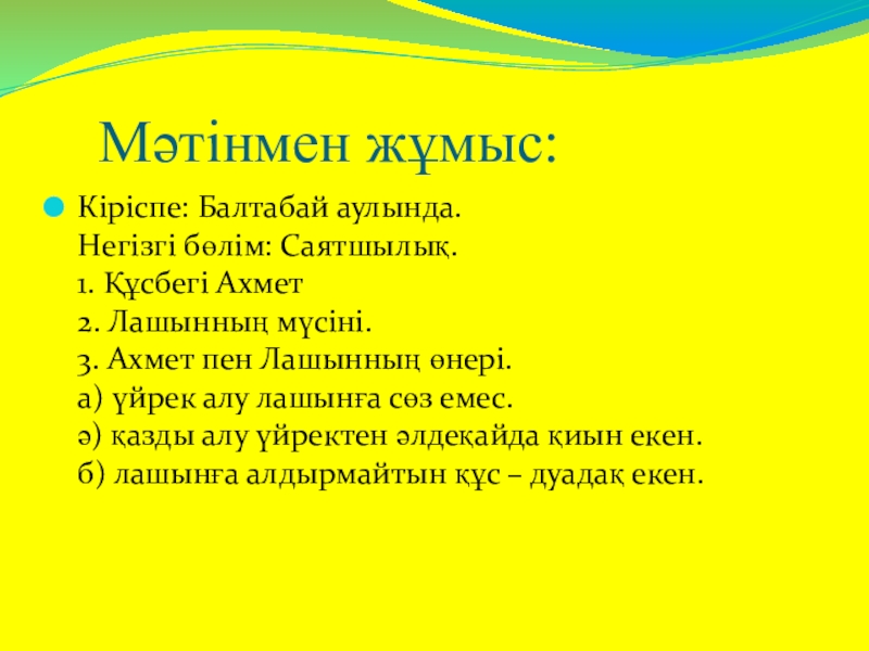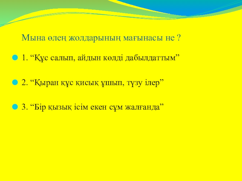 Слайд 9 Мына өлең жолдарының мағынасы не ?