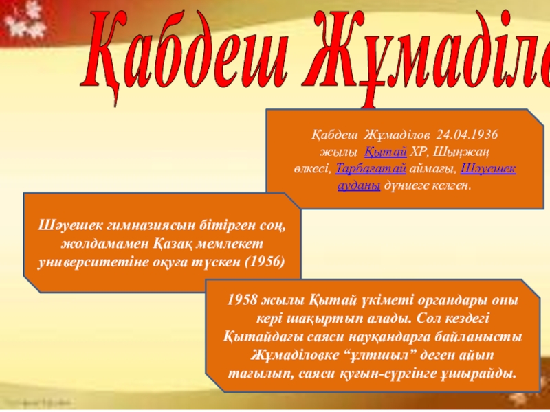 1958 жылы Қытай үкіметі органдары оны кері шақыртып алады. Сол кездегі Қытайдағы саяси науқандарға байланысты Жұмаділовке “ұлтшыл” деген айып тағылып, саяси қуғын-сүргінге ұшырайды.