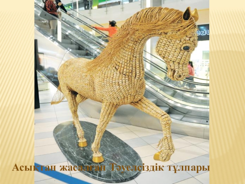 Слайд 13Асықтан жасалған Тәуелсіздік тұлпары