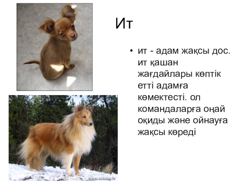Итит - адам жақсы дос. ит қашан жағдайлары көптiк еттi адамға көмектестi. ол командаларға оңай оқиды және