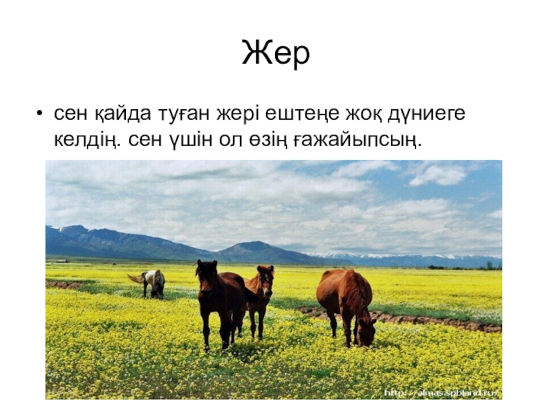 Жерсен қайда туған жерi ештеңе жоқ дүниеге келдiң. сен үшiн ол өзiң ғажайыпсың.