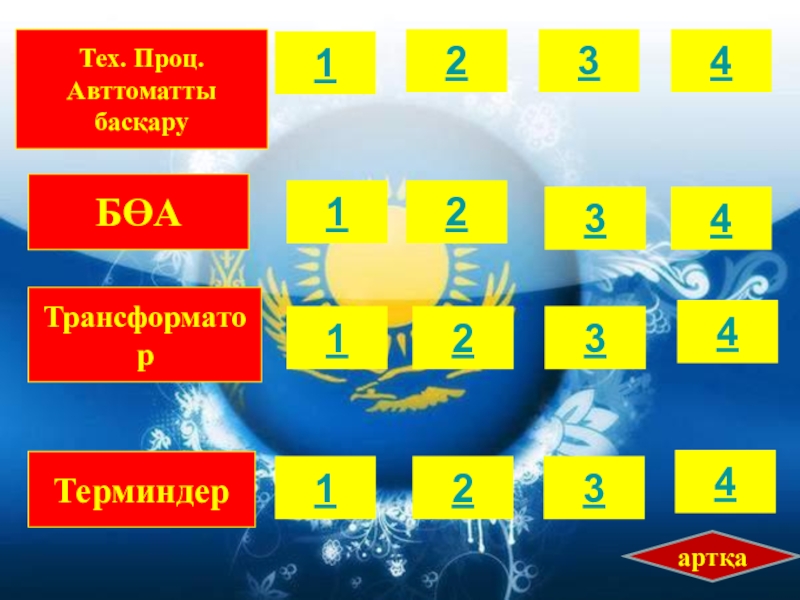 123112233Тех. Проц. Авттоматты басқаруТрансформаторТерминдер444БӨА1234артқа
