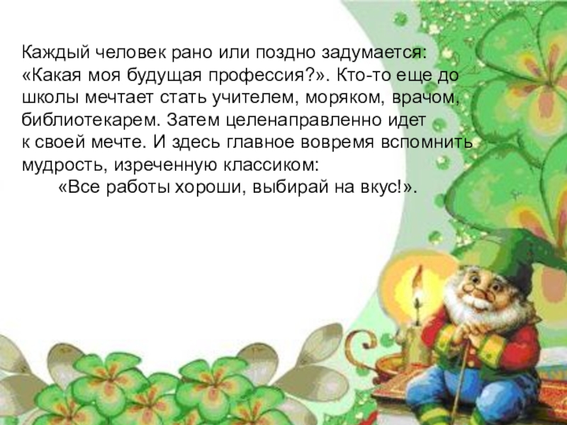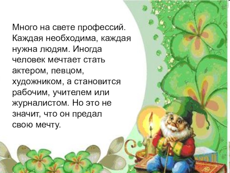 Много на свете профессий. Каждая необходима, каждая нужна людям. Иногда человек