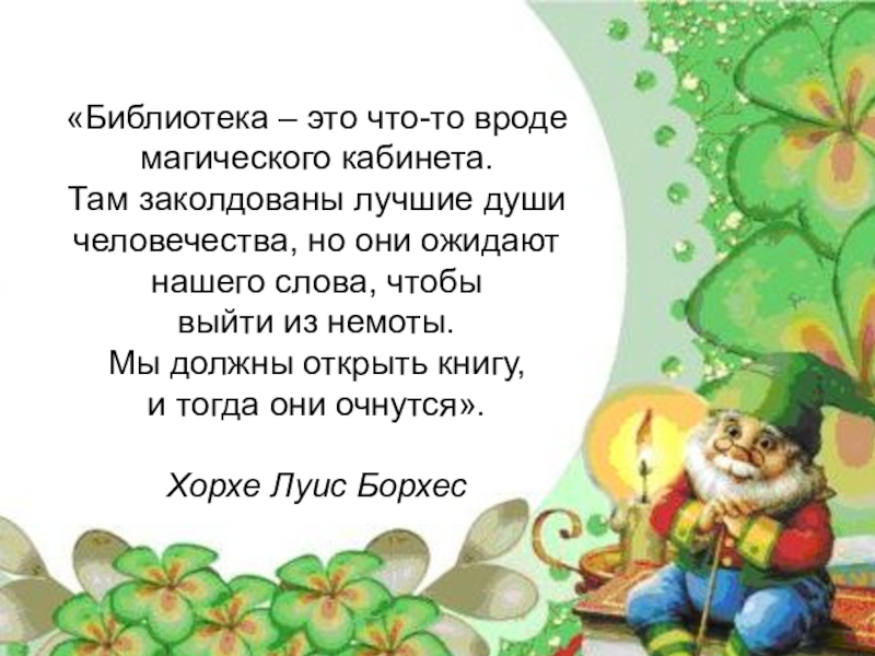 Слайд 6«Библиотека – это что-то вроде магического кабинета.