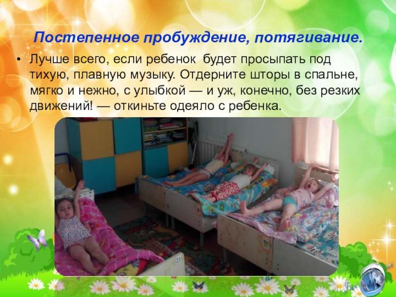 способствовать быстрому и комфортному пробуждению детей после сна.