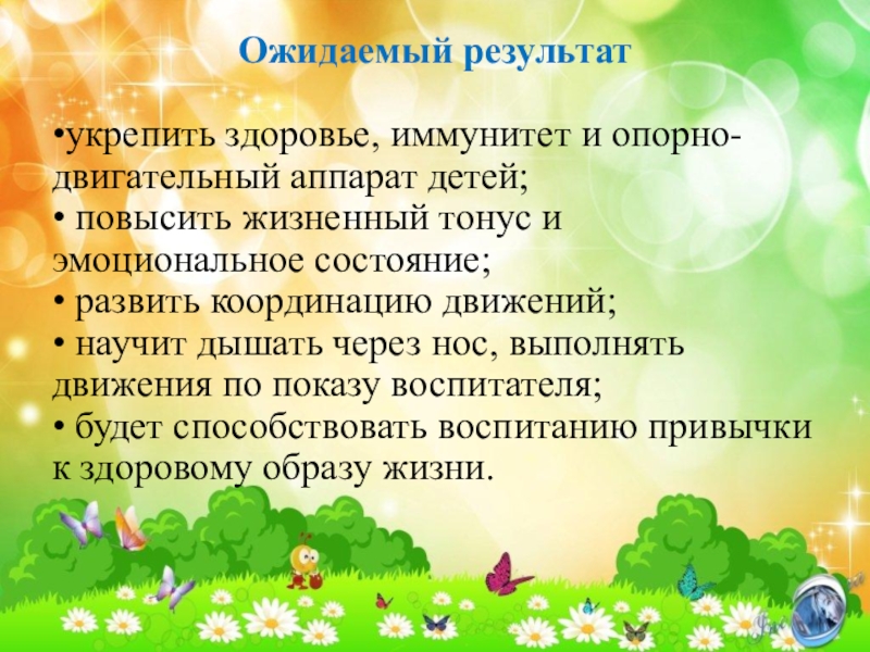 •укрепить здоровье, иммунитет и опорно- двигательный аппарат детей;