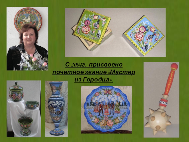 Слайд 5С 2004г. присвоено почетное звание «Мастер из Городца».