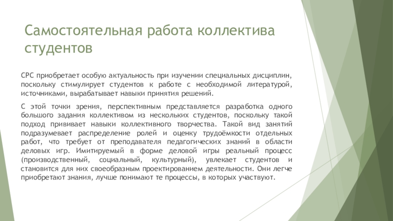 Слайд 5Самостоятельная работа коллектива студентов