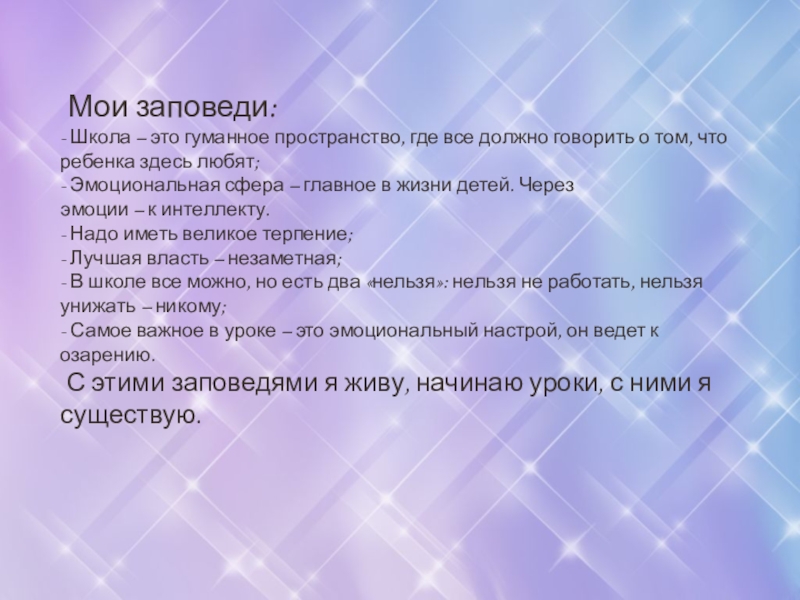 С этими заповедями я живу, начинаю уроки, с ними я существую.