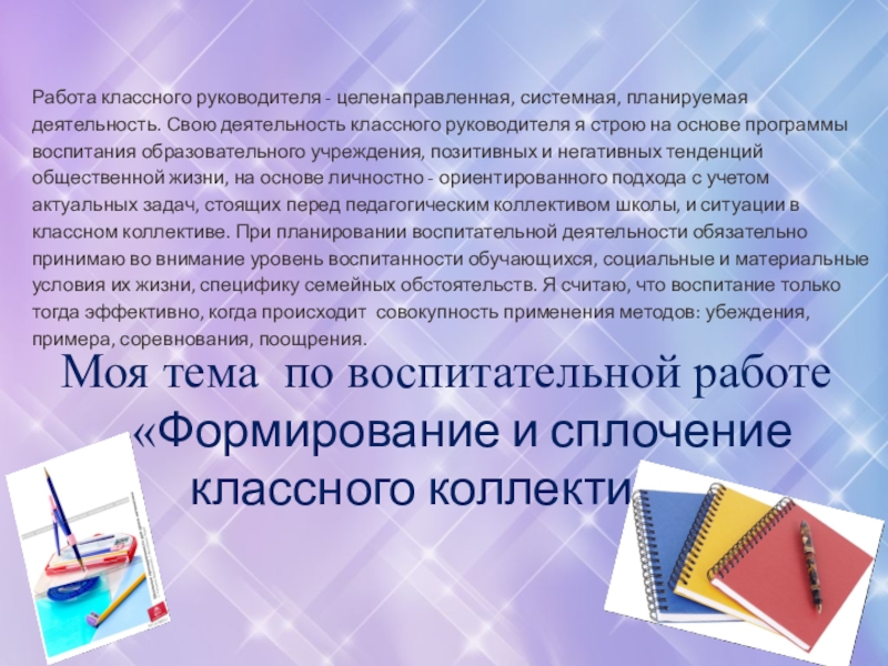 Слайд 6Моя тема по воспитательной работе «Формирование и сплочение классного коллектива»»