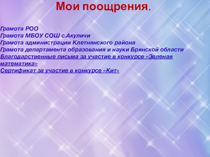 С 2011 года и по сей день работаю учителем начальных классов МБОУ СОШ с.Акуличи.