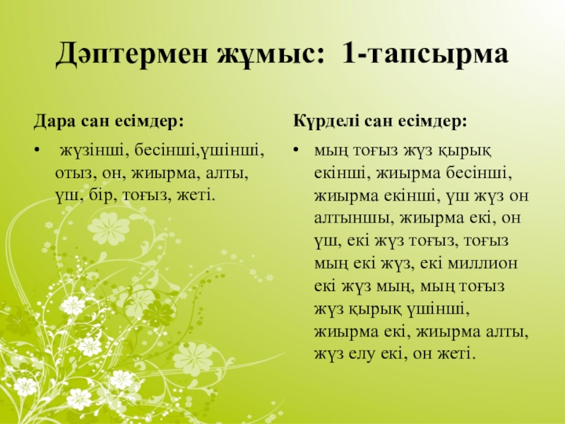 Берілген сурет бойынша дара және күрделі сан есімдерді қатыстырып мәтін құрап жаз.
