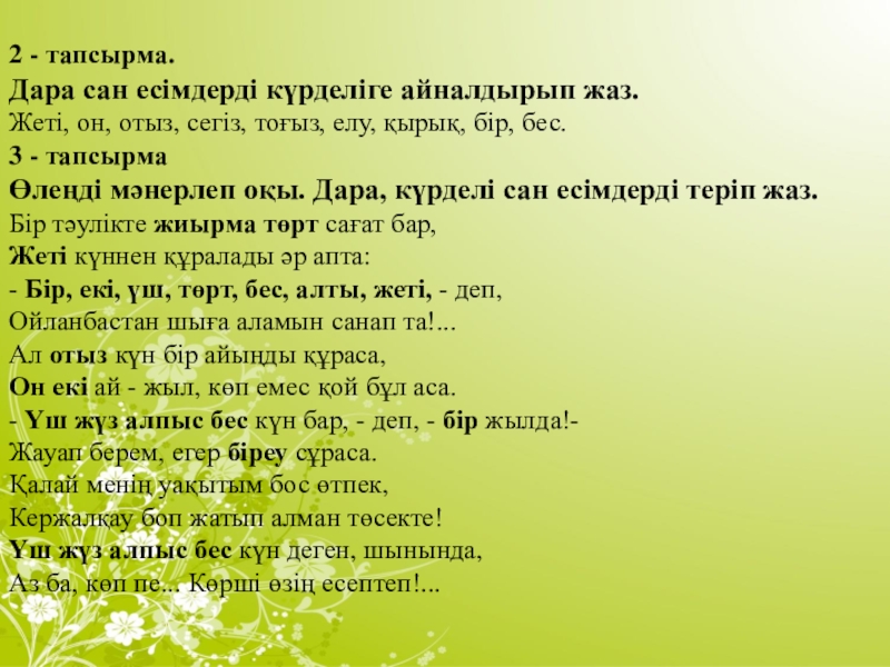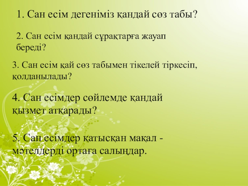 5. Сан есімдер қатысқан мақал - мәтелдерді ортаға салыңдар.