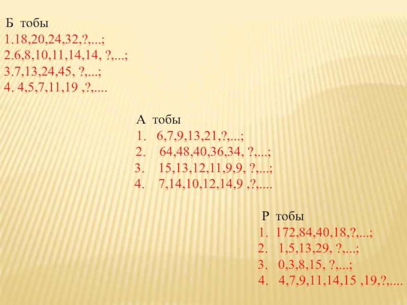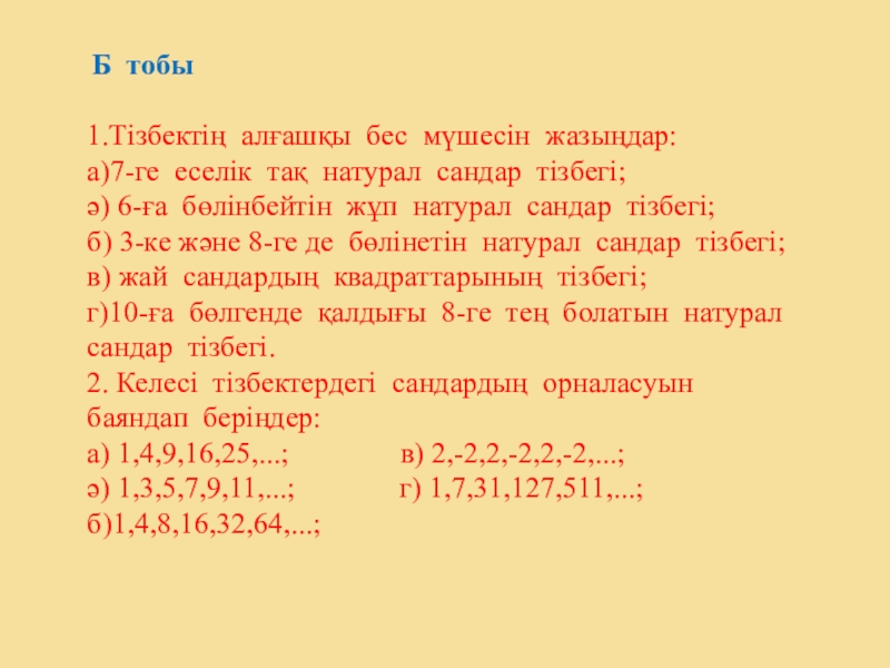 2. Келесі тізбектердегі сандардың орналасуын баяндап беріңдер: