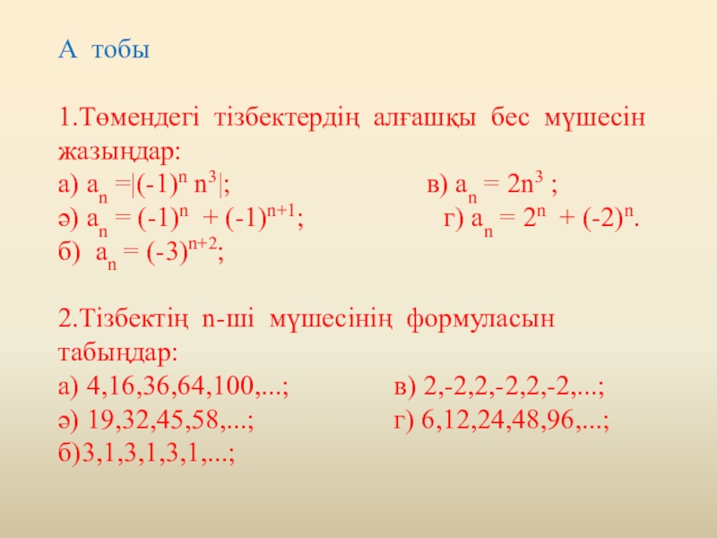 1.Төмендегі тізбектердің алғашқы бес мүшесін жазыңдар: