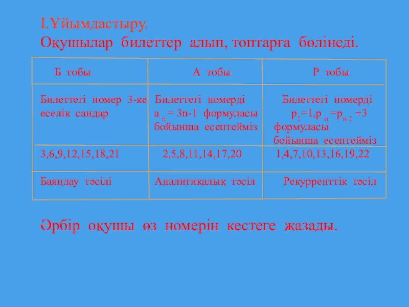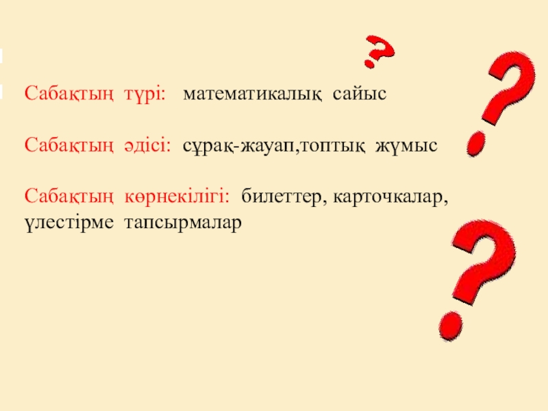 көрнекілігі: билеттер, карточкалар, үлестірме тапсырмалар